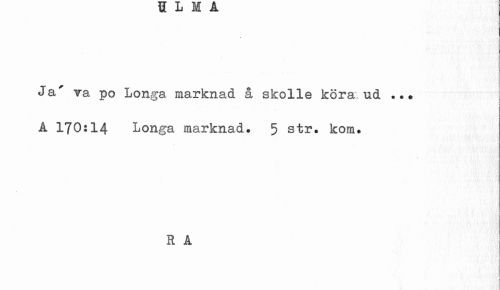 //// Ja' va po Lo riga marknad å skolle köra ud • •• Å 170:14 Longa marknad. 5 str. kom. //// r a ////