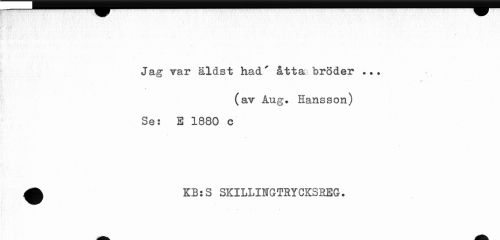 //// Jag Tar äldst had' åtta bröder . •• //// (av Åug. Hansson) //// Se: S 1880 c ////