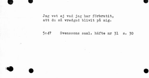 //// Jag vet ej vad jag har förbrutit, att du så Tredgad bliTit på mig. //// 5:4? STenssons sarnl. häfte nr 31 s. 30 //// é //// r ////