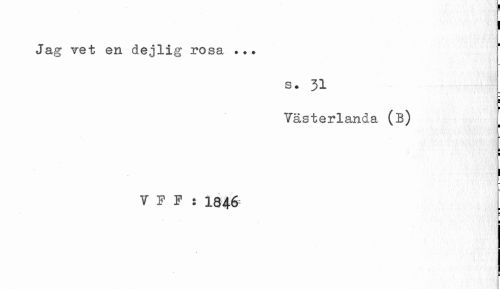 //// I //// Jag vet en dejlig rosa ... //// s. 31 //// ¦ //// ¦ ¦ //// Västerlanda (b) //// m //// i 1 //// 1 //// V?F : 1846 //// I //// 5 ////