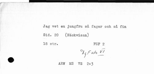 //// WlHBr //// Jag Tet en jungfru så fager och så fin //// Sid. 20 (lackvisan) //// --j _ . • //// / ¦ //// 18 str. PSP 2 //// % F«A //// ^ A1W MS 7S 2:3 ////