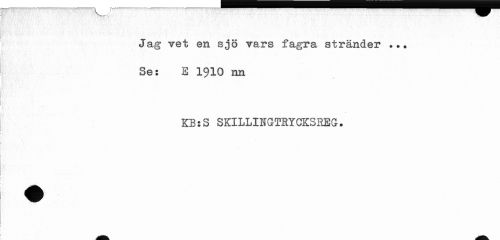 //// V_-: W //// Jag vet en sjö vars fagra stränder ... Se: B 1910 nn //// KB:S SKILLINGTRYGKSHEG. //// f.' 1 ////