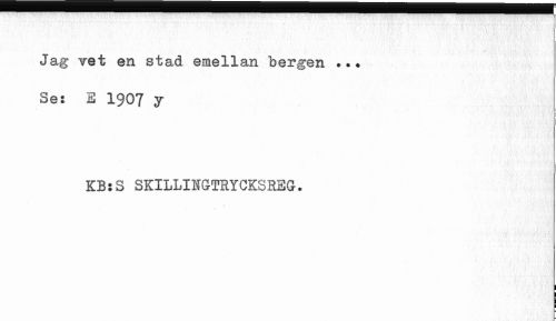 //// Jag vet en stad emellan bergen ..? Se: I 1907 y ////