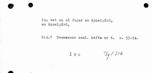 //// Jag vet en så fager en äppelgård, en äppelgård, //// 6:4»? STenssons saml. häfte nr 6. s. 33-34* //// 1 B 0 7é PW ////