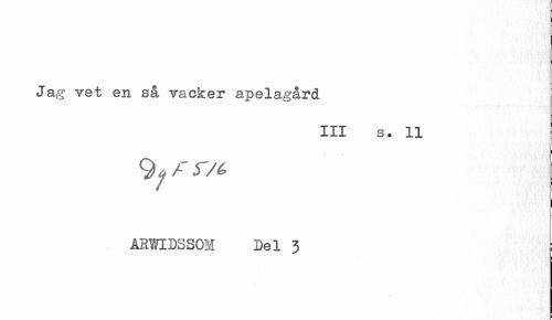 //// Jag vet en så vacker apelagård //// III s. 11 //// 9 * f r/t //// ARWIDSSOM Del J t //// I ////