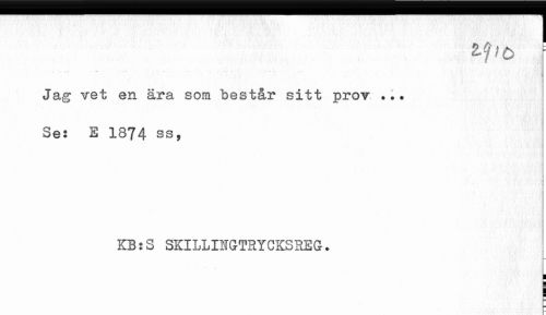 //// I //// Iflö : //// Jag vet en ära som består sitt prov ... Se: B 1874 ss, //// KB:S SKILLIUGTHYCKSBEG. ////