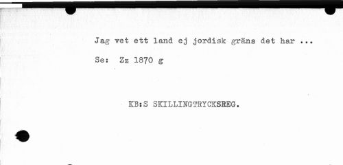 //// Jag vet ett land ej jordisk gräns det har ... //// Se; Zz 1370 g //// % //// KBsS SKILLIBTGTRYCKSBEG. ////