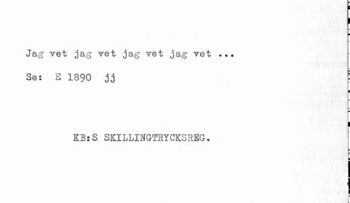 //// ¦ //// Jag* vet jag vet jag vet jag vet ... //// Se: I 1890 jj j //// i //// KB:S SKILLIHGTRYCKSHEG. //// i ////