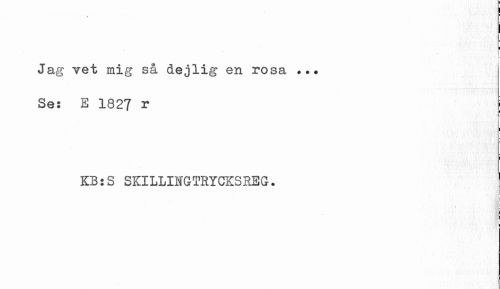 //// I //// Jag vet mig så dejlig en rosa ... //// Se: E 1827 r t //// 1 //// I //// KB:S SKILLINGTRYCKSREG. //// I ¦ //// i I ////