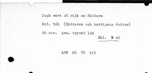 //// Jagh wert så rijk en Riddare //// Sidt 5él (Riddaren och hertigens dotter) //// 20 str. Årw. tryckt 144 //// Skl. B 42 //// a»».^ ,,f»i mmiinn^n-m //// "v. //// ÅRW MS TS 2:1 ////