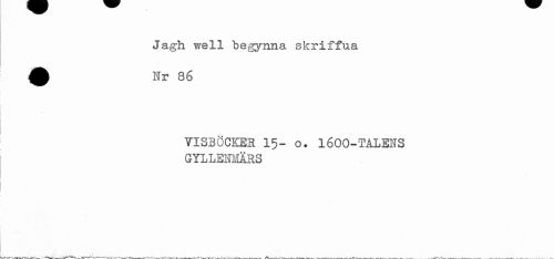 //// Jagh vrell begynna skriffua //// VISBÖCKER 15- o. 1600-TALENS GYLLENMÄRS ////