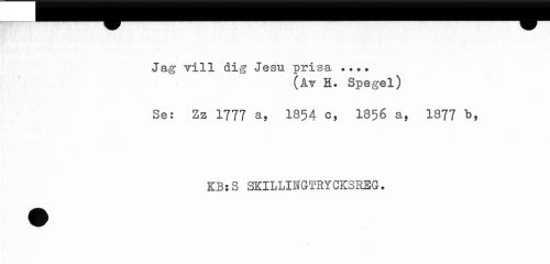 //// / //// Jag vill dig Jesu prisa ... //// (Av H. Spegel) //// Se: Zz 1777 a, 1854 c, 1856 a, 1877 b, //// KB:S SKILLINGTRYCKSHBG. ////