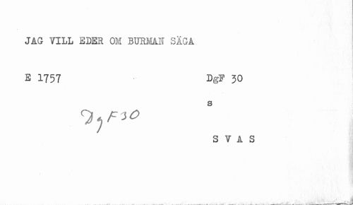 //// JAG TILL EDER OM BURMAN SÄGA //// E 1757 Dg*' 30 //// S V A S //// ...-a. . . ^ -. i. . i . ___&___a ___-. .^i . u.., - 1 X. ////