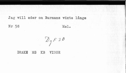 //// Jag vill eder om Burmans växte långe //// »T //// Nr 58 Mel. //// V //// DRAKE MS KB TIS OR ////