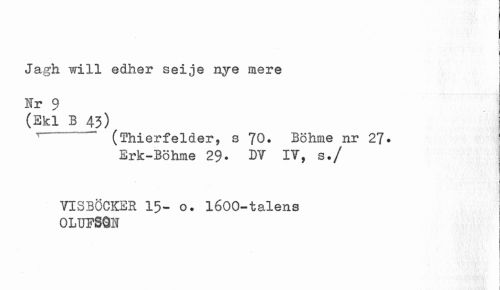 //// I //// Jagh will edher seije nye mere //// Kr 9 //// (Ekl B 43) //// 1 ' (Thierfelder, s 70. Böhme nr 27» //// Erk-Böhme 29- DY IT, s./ //// YISBÖCKEH 15- o. 1600-talens OLUFSQN //// i //// I //// I I //// I ////