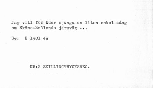 //// i //// Jag vill för Eder sjunga en liten enkel sång om Skåne-Smålands järnväg //// i //// Se: E 1901 ee //// . ' . //// 1 //// KB:S SKILLIIGTHYCK8REG? //// ¦ ////
