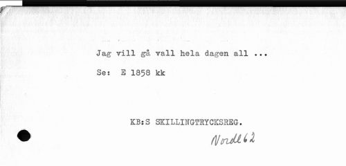 //// ... V{ ... • . » . . . ... • //// Jag vill gå vall hela dagen all ... Se: B 1858 kk //// ? tfn/M ////