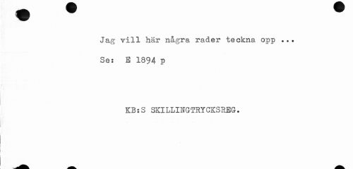 //// Jag vill här några rader teckna opp ... Se: E 1894 P //// KB:S SKILLINGTRYCKSREG? ////