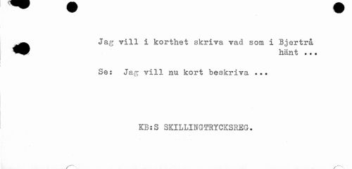 //// ^^ Jag vill i korthet skriva vad som i Bjertrå //// ^^^^^ hänt »• • //// Se: Jag vill nu kort beskriva . //// KB: S SKILLINGTRYCKSREG-. ////