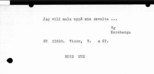 //// Jag vill mala uppå min skvalta ... //// Yg //// Korsberga //// EU 21810. Yisor, T. s 67. //// HORD MUS //// # ////