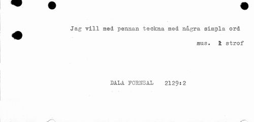 //// Jag vill med pennan teckna med några simpla ord //// mus. 1 strof //// DALA FORNSAL 2129:2 ////