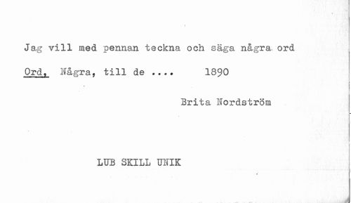 //// Jag vill med pennan teckna och säga några ord Ord» Ifågra, till de 1890 //// Brita Hordström //// LUB SKILL UNIK //// ./ ... >1 T. 1 * t.t.fAA. Mri ////