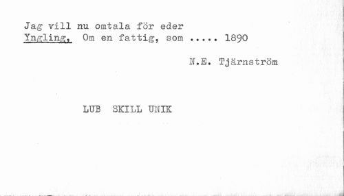 //// Jag Till nu omtala för eder Ynrelinff, Om en fattig, som... 1890 //// inE. Tjärnström //// ) //// LUB SKILL UNIK ////