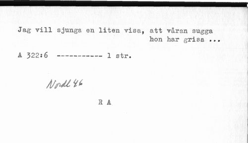 //// Jag vill sjunga en liten visa, att våran sugga //// hon har grisa //// A 322:6 --- 1 str» //// ¦ //// ' j //// /IftrUllt j //// R A ////