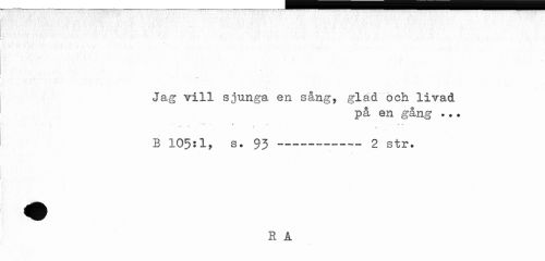 //// Jag Till sjunga en sång, gläd och livad //// på en gång *. ? //// ... ; //// B 105:1, s. 93---2 str. //// R A ////