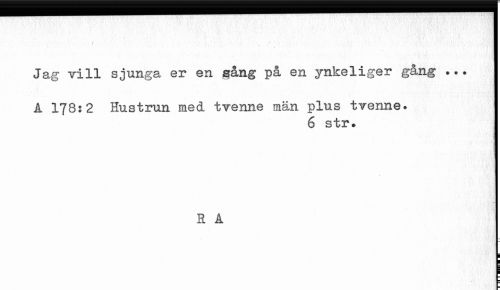 //// Jag vill sjunga er en gång på en ynkeliger gång ... //// A 178:2 Hustrun med tvenne män plus tvenne. //// 6 str. //// R A //// F ////