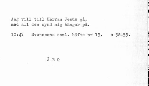 //// i j //// ¦ //// Ja g Till till Herran Jesus gå, med all den synd mig hänger på. //// 10:4? Svenssons saml. häfte nr 1J* s 58~59* i //// i //// i //// ¦ i //// ÅBO ////