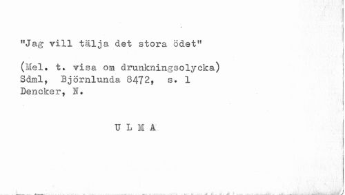 //// » //// "Jag Till tälja det stora ödet" //// (Mel. t. visa om drunkningsolycka) j //// Sdml, Björnlunda 8472, s. 1 Dencker, I. //// ULIi //// iL___. _ . _ i. «.• i-. . ti . J», ' ,., ... _ ---y: J ////