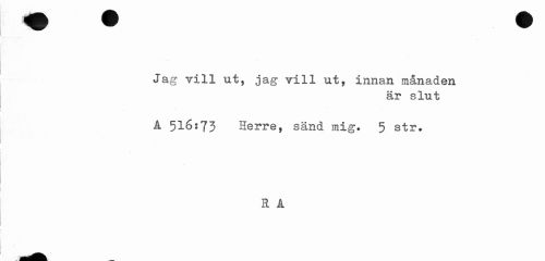 //// /^H fl B JM Hk //// ' V tB w ^ 9 //// Jag vill ut, jag vill ut, innan månaden //// är slut //// A 516:73 Herre, sänd mig. 5 str. //// a a //// udtodfl-, IK. //// -¦i.^ ... Ho ////