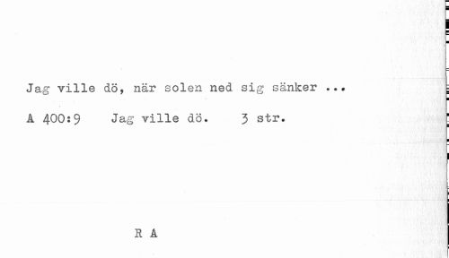 //// S ¦ //// » //// Jag ville dö, när solen ned sig sänker . i //// ¦ //// A 400:9 Jag ville dö. J str. f //// i //// i //// ¦ //// H Å ////