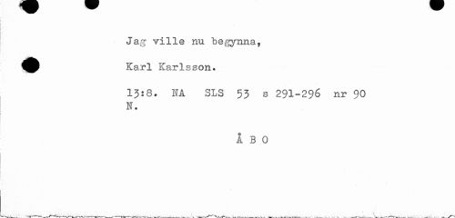 //// Jag ville nu begynna, Karl Karlsson. //// 1J:8. UA SLS 53 s 291-296 nr 90 JT. //// ÅBO ////
