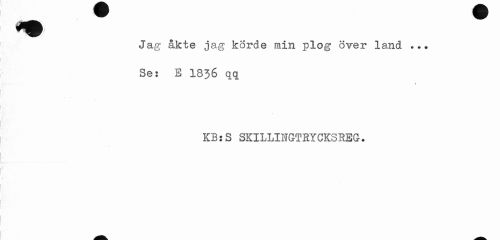 //// Jag åkte jag körde min plog över land ... Se: E 1336 qq //// * //// KB:S SKIILINGTEYCKSBEG. ////