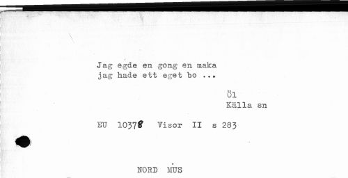 //// \ //// / //// Jag eg&e en gong en maka jag hade ett eget bo . //// Öl //// Källa sn EU 1037J? Yisor II s 28J //// IORB IUS ////
