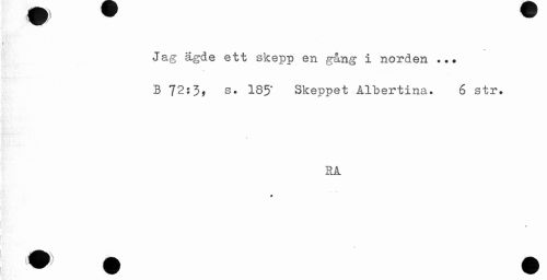 //// v a g Qr //// gde ett skepp en gång i norden B 72s3, s. 185' Skeppet Albertina. 6 str. //// RA //// ? ////