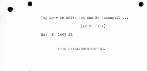 //// Jag äger en kälke och den är schangtil ... //// (Av 0. Pihl) //// Se: E 189J dd //// KB:S SKILLINGTRYCKSREG. //// * ////