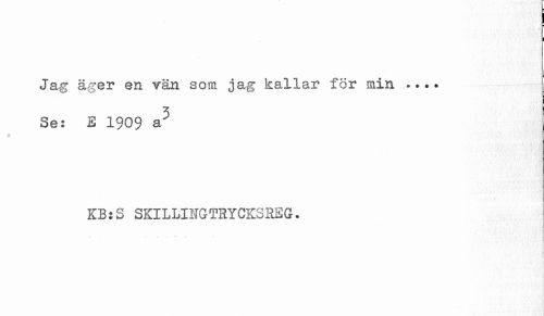 //// I ¦ //// I //// Ja g äger en vän sora jag kallar för min ... Se: E 1909 a5 //// KB:S SKILLIHGTHYCKSEEG. //// 1 //// I ////