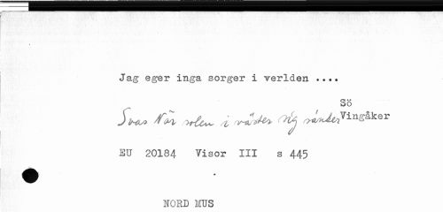 //// X //// Jag eger inga sorger i verlden //// ... //// O0 //// EU 20184 Visor III s 445 //// HORD MUS ////