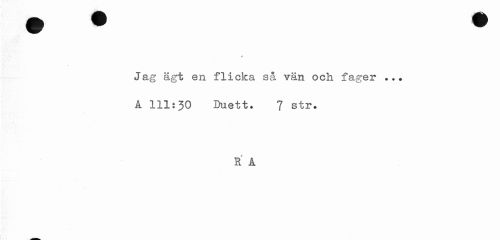 //// «f //// Jag ägt en flicka så vän och fager ... A 111:30 Duett. 7 str. //// 1 A ////