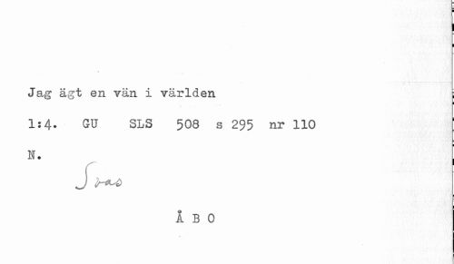 //// I i //// Jag ägt en vän i världen //// i //// 1:4. GU SLS 508 s 295 nr 110 ! //// N. | //// ÅBO ////