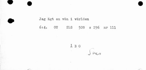 //// ^^ Jag ägt en vän i världen //// 6:4. GU 3LS 508 s 296 nr 111 //// ÅBO //// J //// -v ////