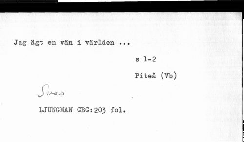 //// Jag ägt en vän i världen ... //// s 1-2 //// Piteå (Vb) //// A //// LJUBGMAN GBG:203 fol. //// E ////