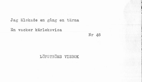//// 1 //// l //// -- //// Jag älskade en gång en tärna En vacker kärleksvisa //// Nr 48 //// LÖPSTRÖMS VISBOK ////