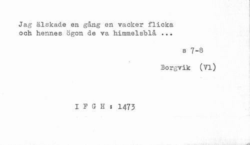 //// I //// Jag älskade en gång en vacker flicka och hennes ögon de va himmelsblå ... //// s 7-8 //// » //// Borgrik (Yl) //// I F G H : 1473 //// . Wl ////
