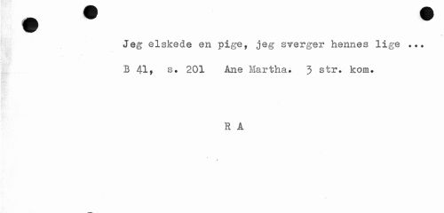 //// Jeg elskede en pige, jeg sverger hennes lige B 411 b. 201 Ane Martha. 3 kom. //// R A //// t ////