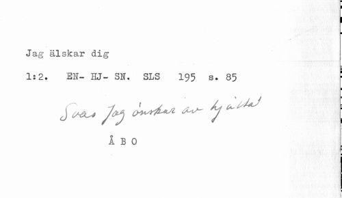 //// Il ¦ //// Jag älskar dig //// ; - //// 1:2. El- EJ- SN. SLS 195 s. 85 l //// i //// I B O //// ¦ //// = ¦ ////