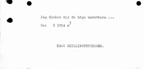 //// ^^ Jag älskar dig du höga underbara. //// Se: S 1854 & //// KB: 3 SKILLINGTRYCKSEEG. //// t ¦ ¦ . . ////